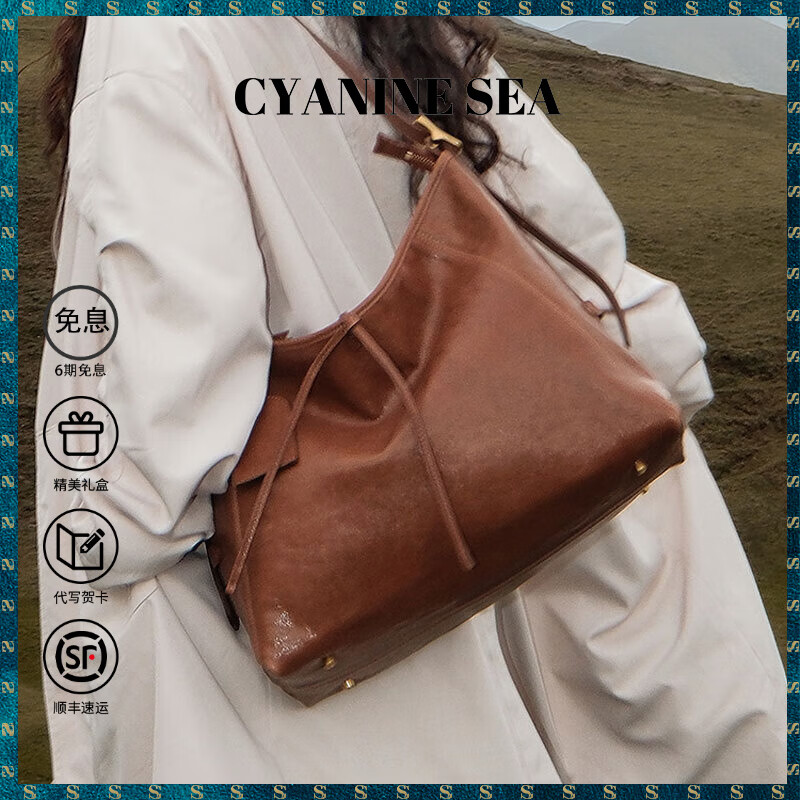 海青蓝 CYANINE SEA轻奢包包女款植鞣牛皮包单肩包托特包元旦新年生日礼物送女友老婆 干邑色-大号