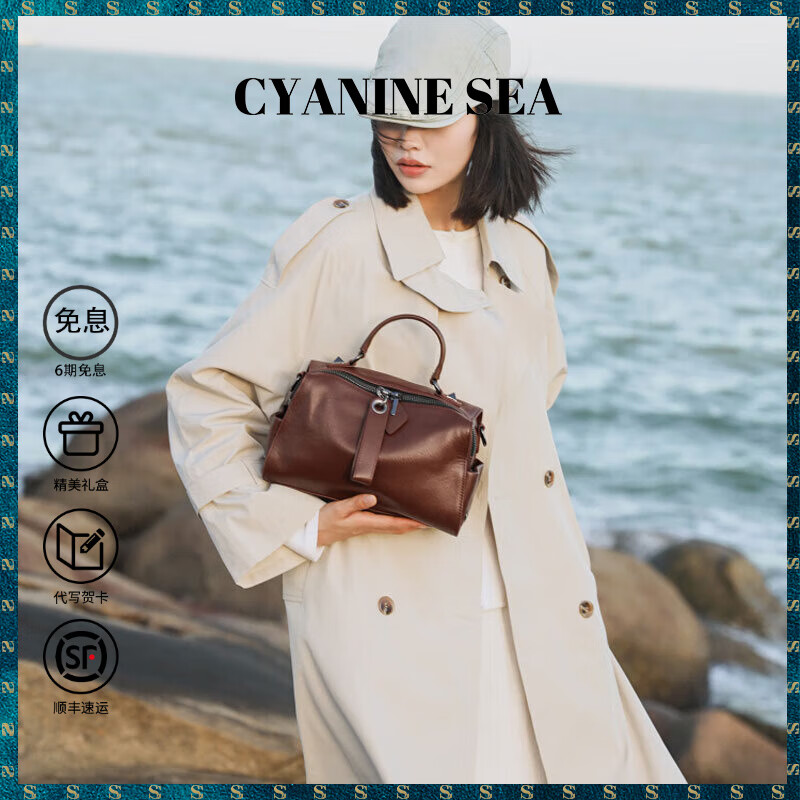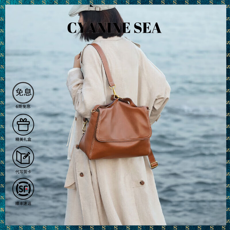 海青蓝 CYANINE SEA轻奢包包女款植鞣牛皮包斜挎包双肩包元旦新年生日礼物送女友老婆 棕色