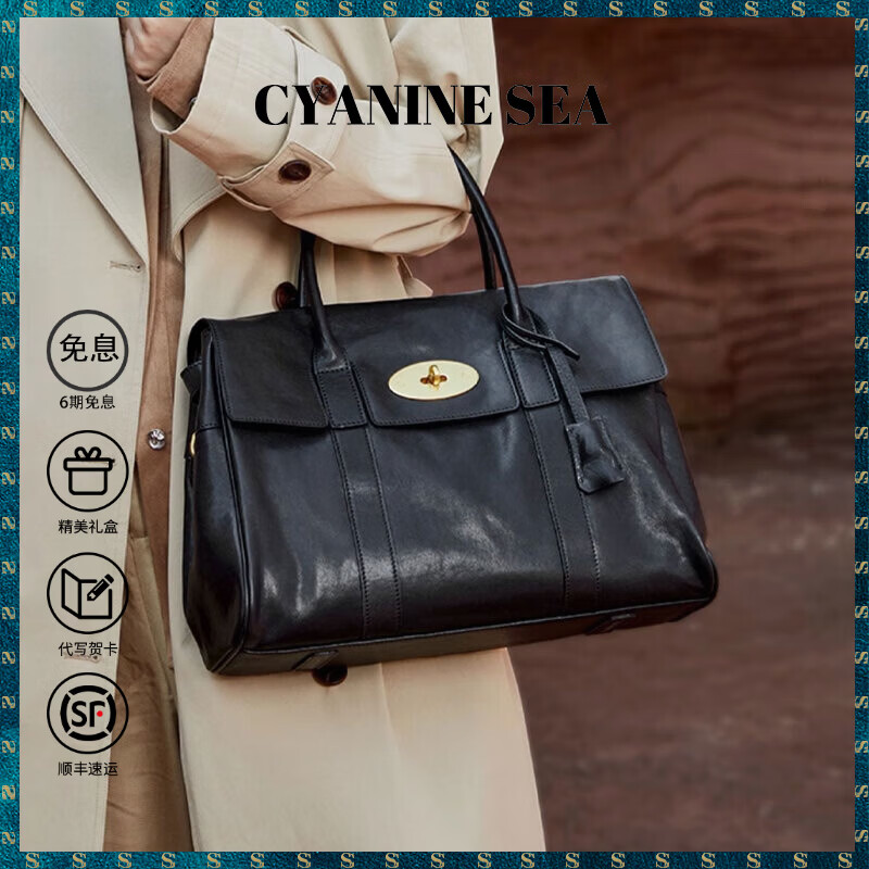 海青蓝 CYANINE SEA轻奢包包女款植鞣牛皮包单肩包托特包元旦新年生日礼物送女友老婆 黑色-大号