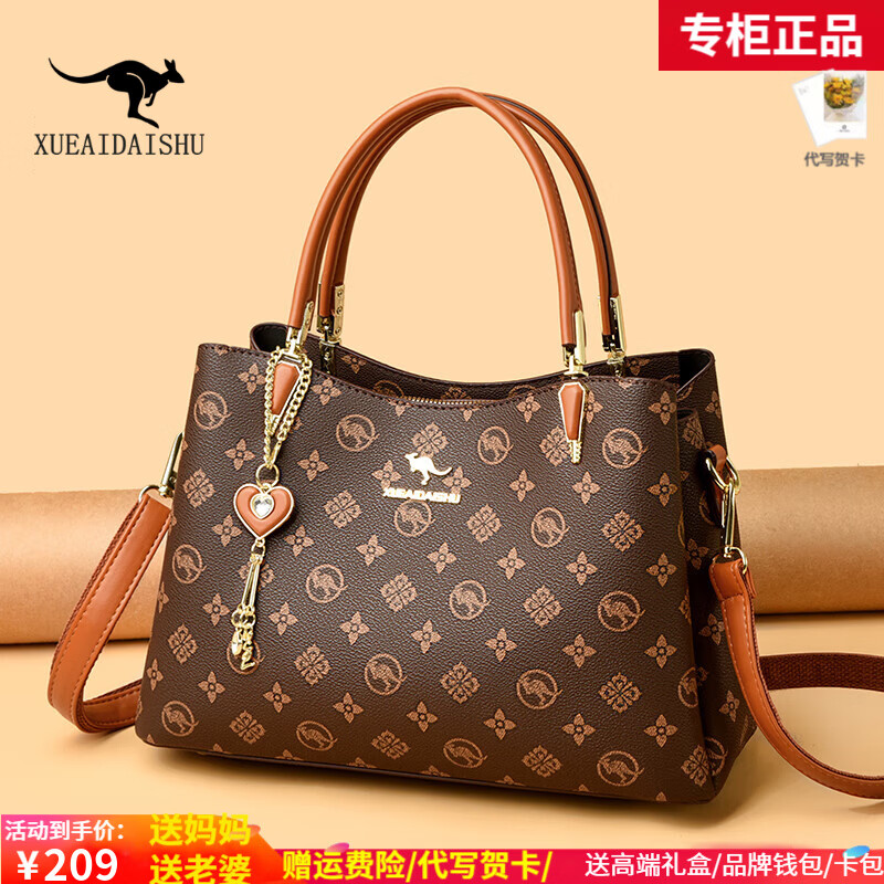 袋鼠品牌真皮包包2025秋冬新款送妈妈单肩手提包时尚中年斜挎女包