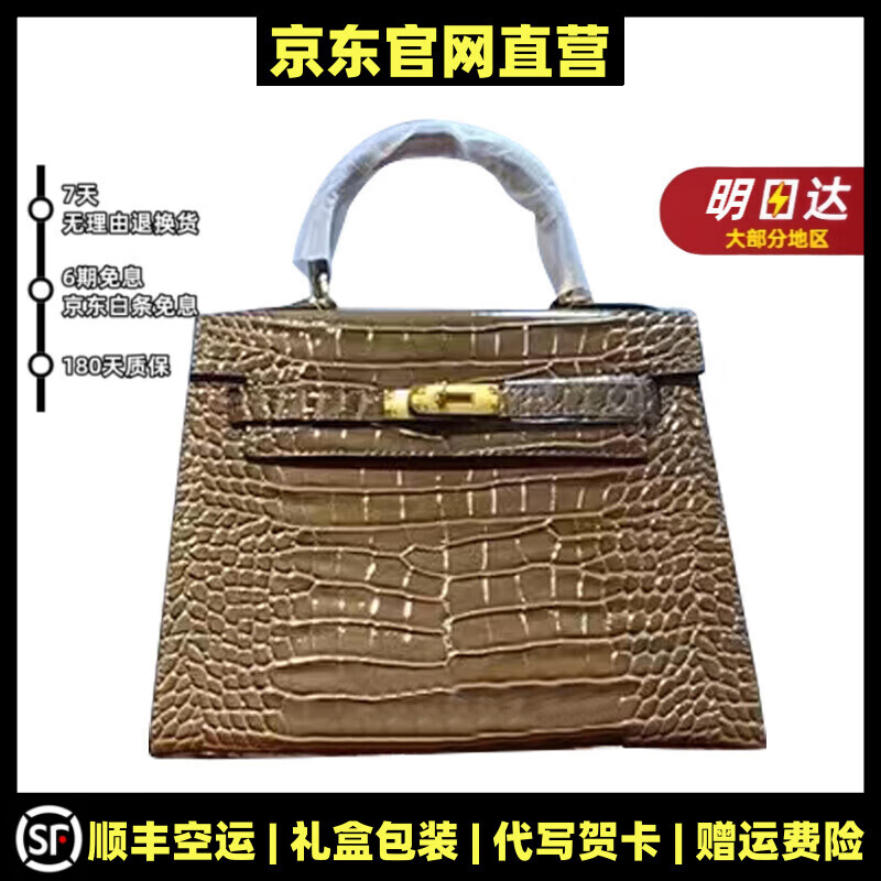 MOSPOKE礼物轻奢品牌真皮包包女包鳄鱼纹小众凯莉包单肩包竖式手提包 卡其【精美礼盒+礼袋】