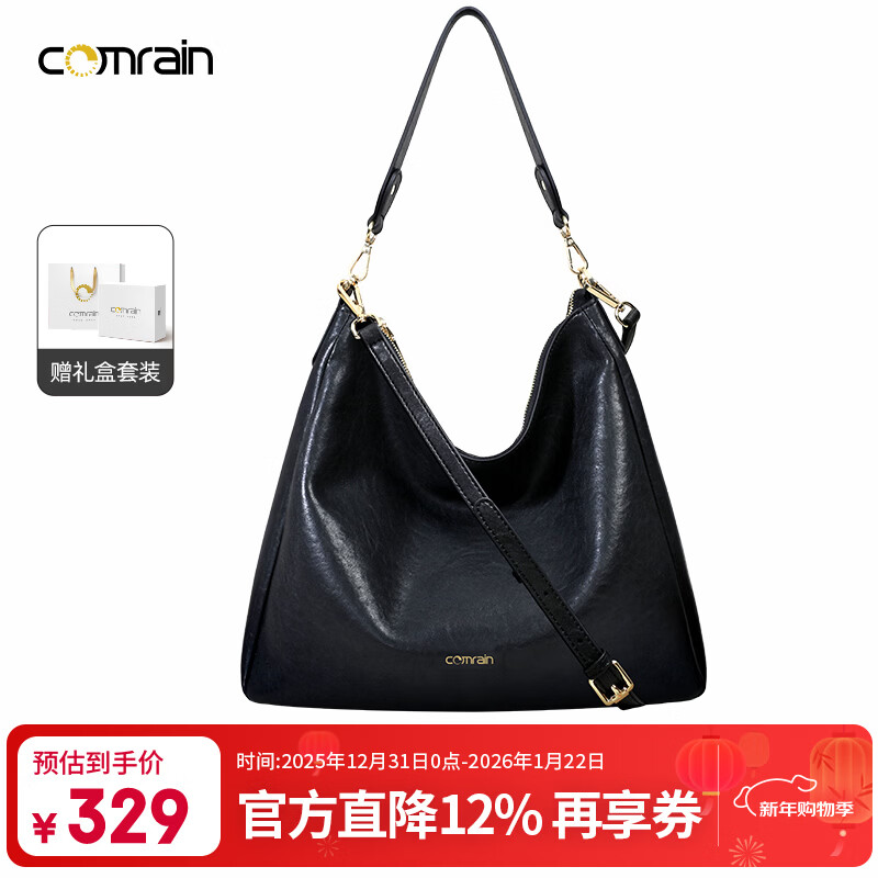 COMRAIN牛皮包包女款2025新款hobo流浪包女包通勤单肩包送老婆圣诞礼物