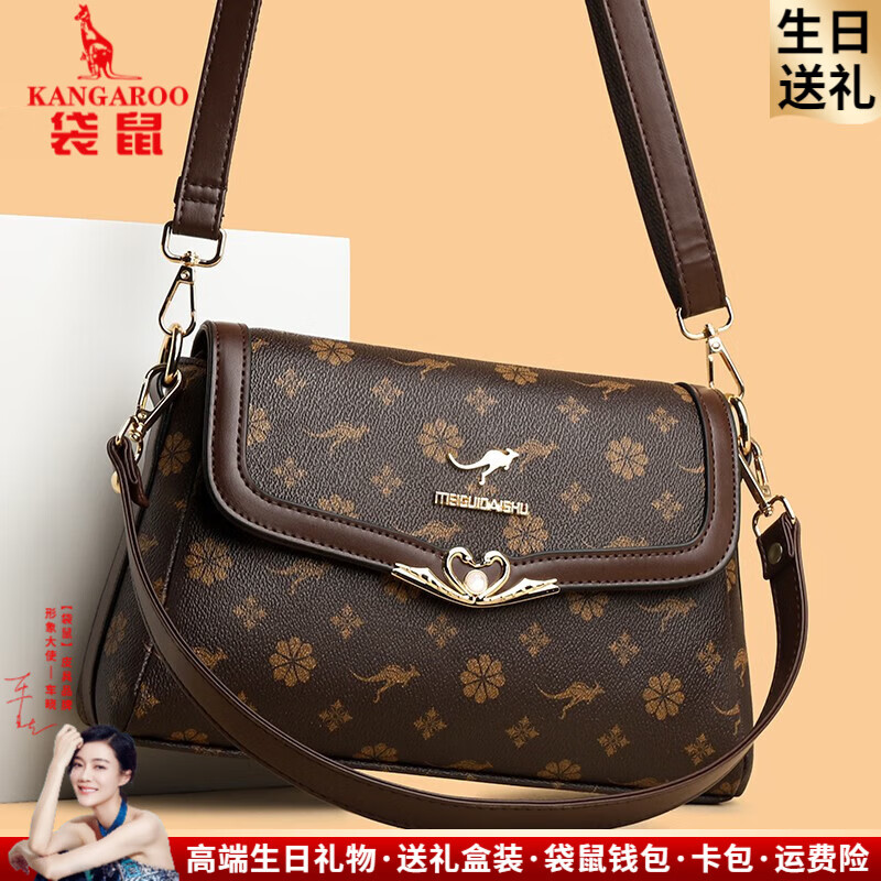 袋鼠卡拉轻奢包包女包斜挎软皮包2026新款女式单肩包母亲节送妈妈生日礼物 棕玫瑰配棕(礼盒+手包卡包)