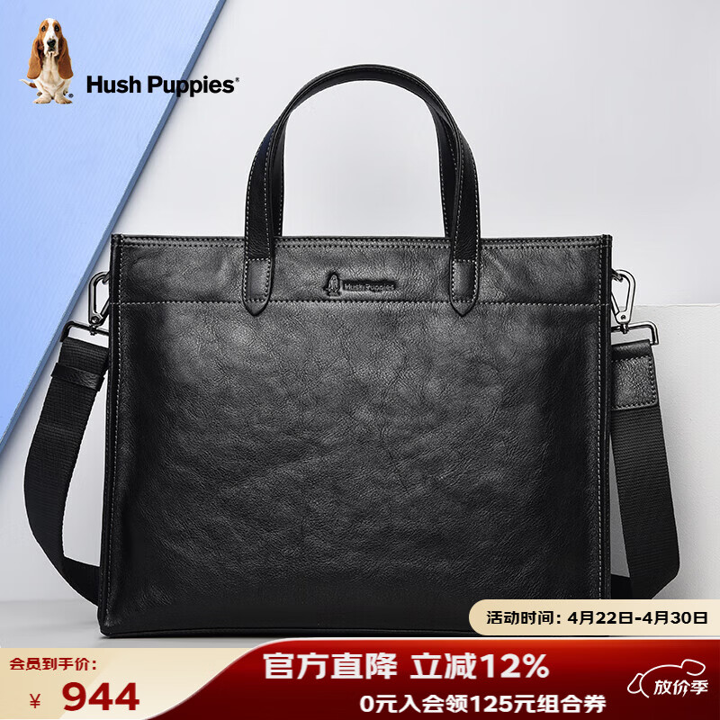 暇步士(Hush Puppies) 公文包男头层牛皮男士手提包大容量商务包男包礼物送男友 黑色