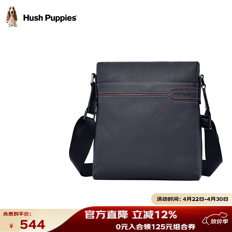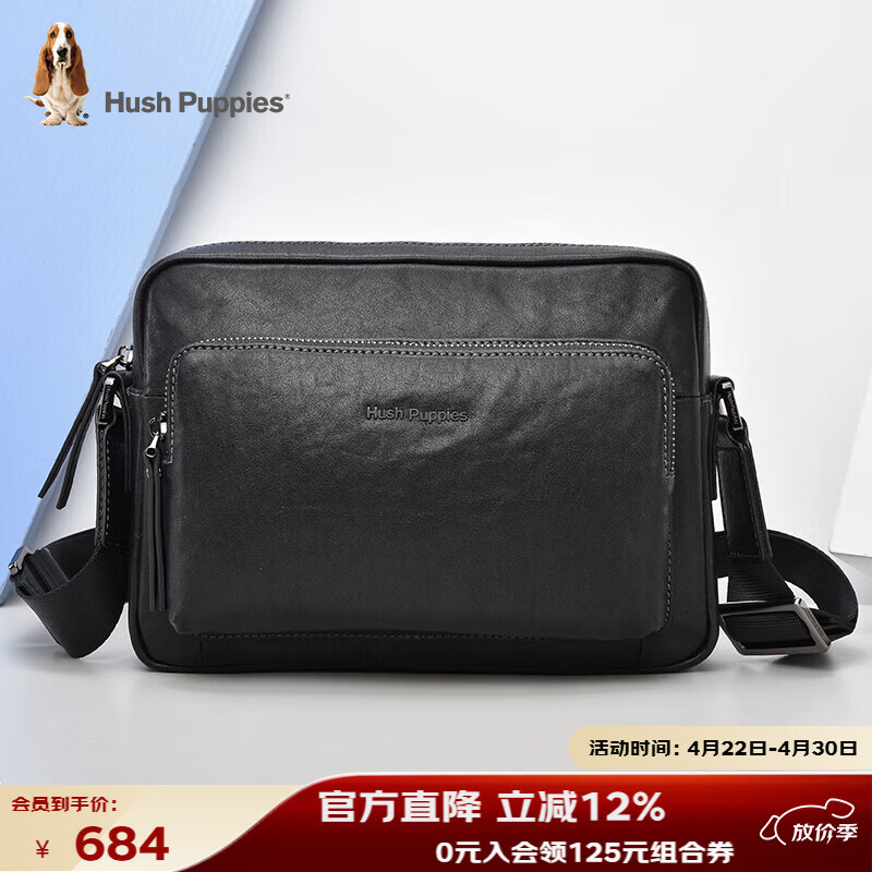 暇步士(Hush Puppies)单肩包男植鞣牛皮包斜挎包男包潮流时尚大容量斜挎包商务休闲包包
