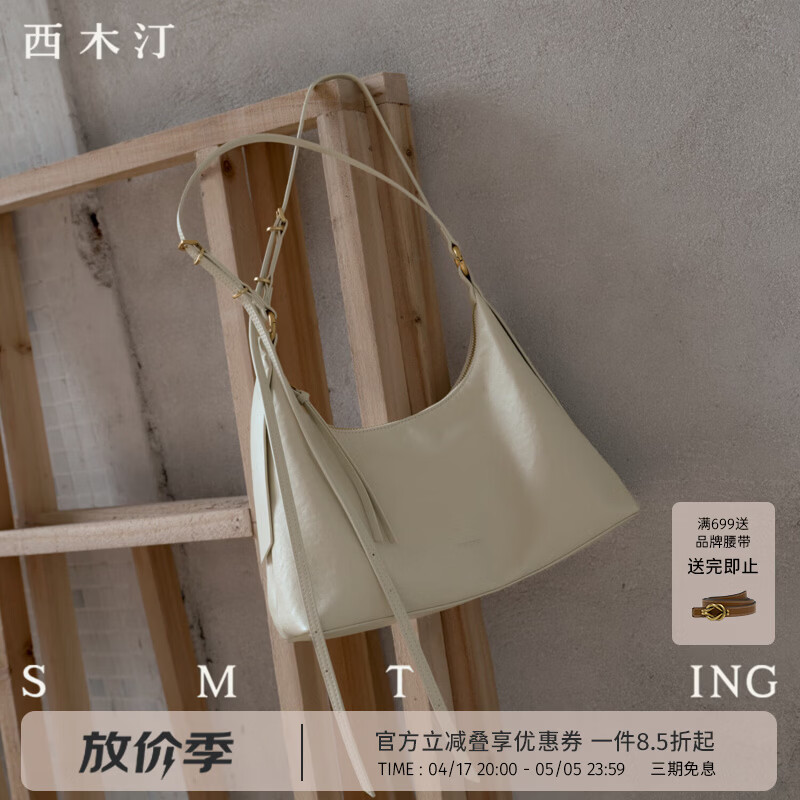 西木汀 自由畅想 头层牛皮包2026新款托特包女小众设计单肩包 生日礼物 米白色 小号【可放8.3寸iPad】