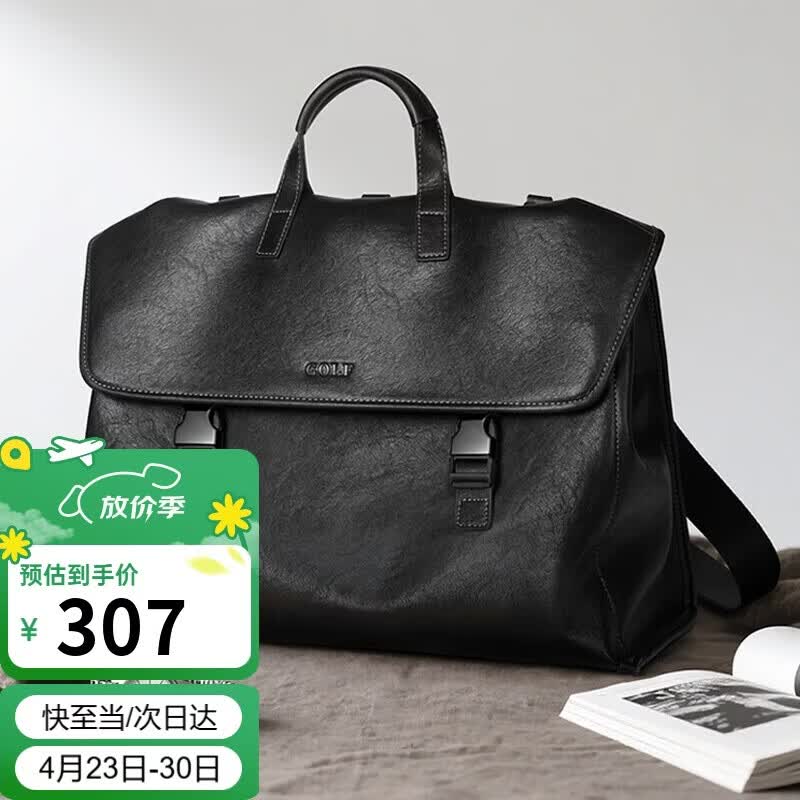 高尔夫(GOLF)商务公文包男士软皮14英寸手提电脑包多功能单肩斜挎双肩背包