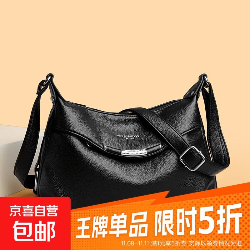 软皮包包女2025新款潮时尚中年女包女士手提包百搭休闲单肩斜挎包 黑色8912