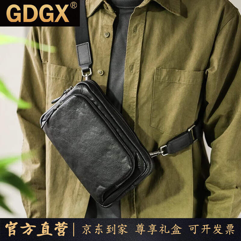 GDGX男士单肩包真皮斜挎包男头层牛皮户外便携小背包时尚休闲男包皮包 黑色 23*5*14cm