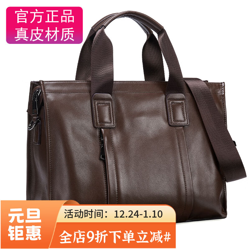 澳懿真皮手提包大容量男包商务公文包头层牛皮男士牛皮包包男士电脑包 咖啡色【时尚款】 大号可装电脑15.6英寸
