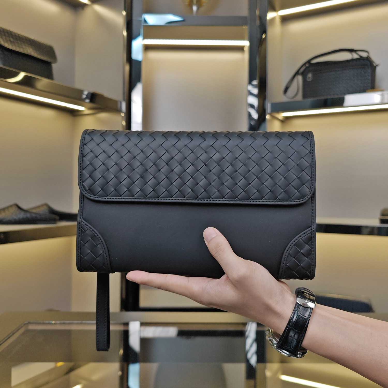 手拿包男真皮编织 新款潮夹包软皮手包男士商务休闲牛皮包 手抓包