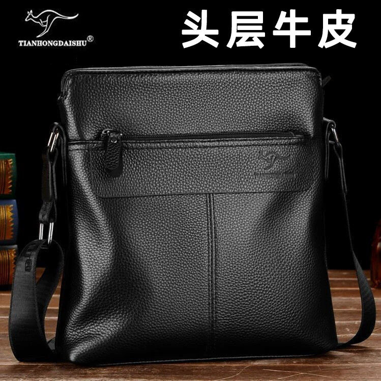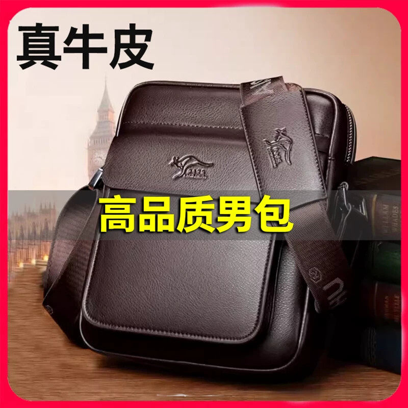 正品袋鼠真皮男包商务男手提包公文包男单肩包斜挎包牛皮包电脑包