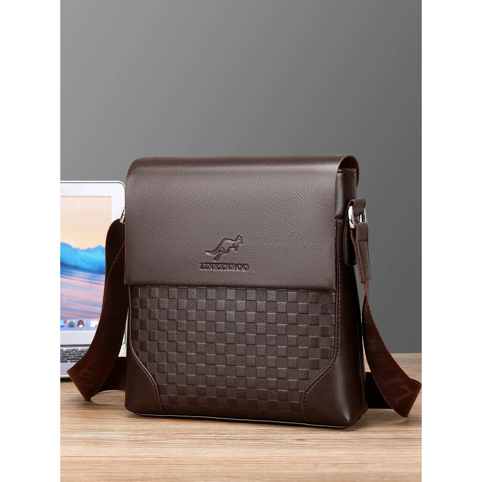 男士包包单肩斜挎包皮包商务横款手提包休闲公文包中年挎包工具包