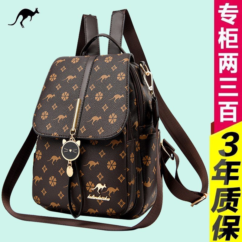 正品袋鼠2023新款真皮双肩包女士时尚旅游背包书包软牛皮包送妈妈