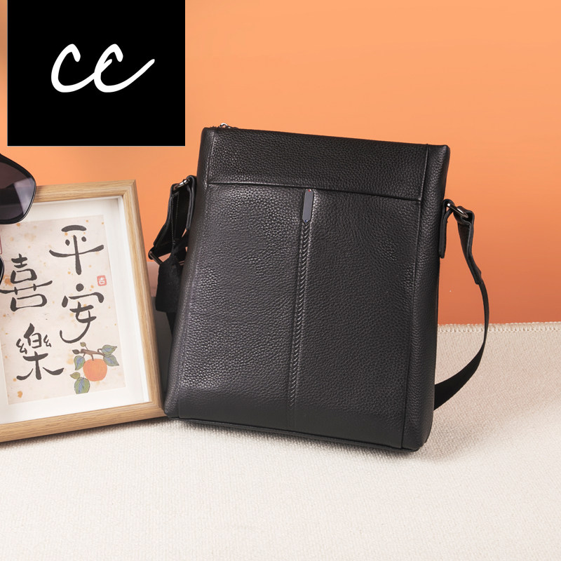 CC新款男士皮包单肩包轻奢真皮斜挎包时尚通勤商务公文包3174