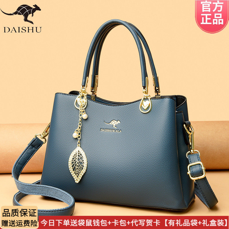 袋鼠专柜正品皮包手提包女2026新款软皮软包大气斜挎包送礼妈妈包