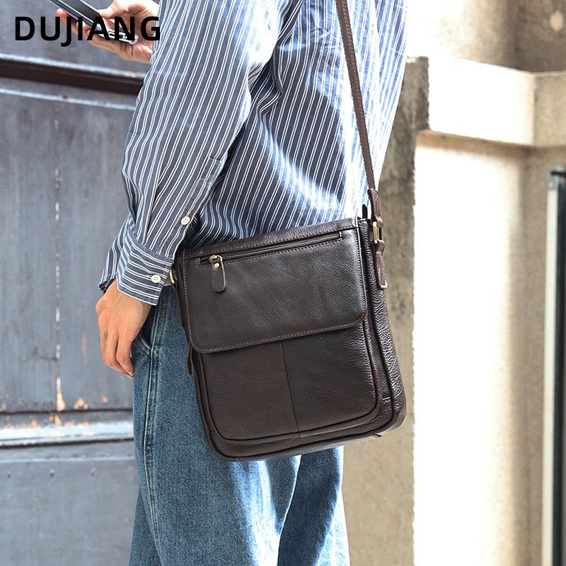 新款头层牛皮时尚休闲男士单肩斜挎包多功能手提真皮男包男款皮包