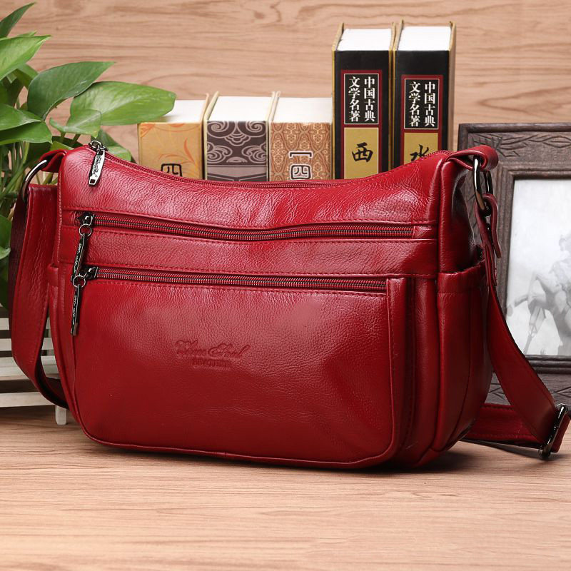 真皮包包女2025新款时尚大容量多隔层中年妈妈包斜挎包女士单肩包