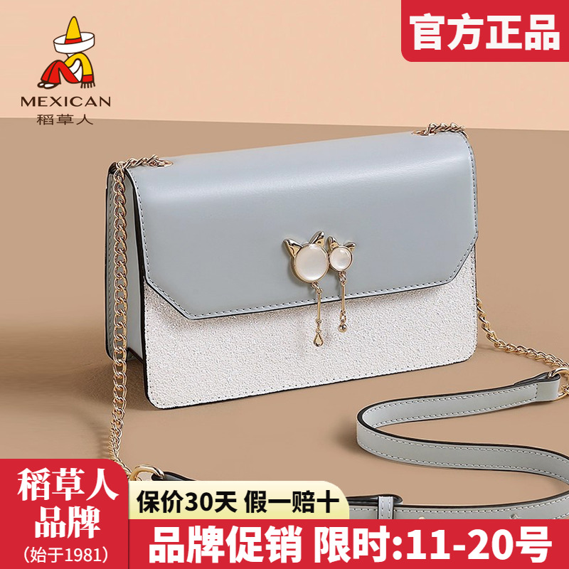 稻草人包包女2025新款时尚单肩包清新牛皮包包百搭女士斜挎包正品