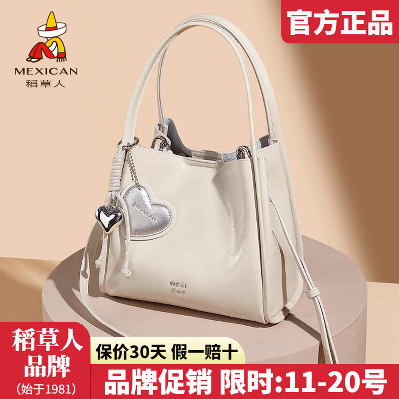 稻草人牛皮包包女2025新款时尚单肩包简约菜篮子包百搭斜挎包正品