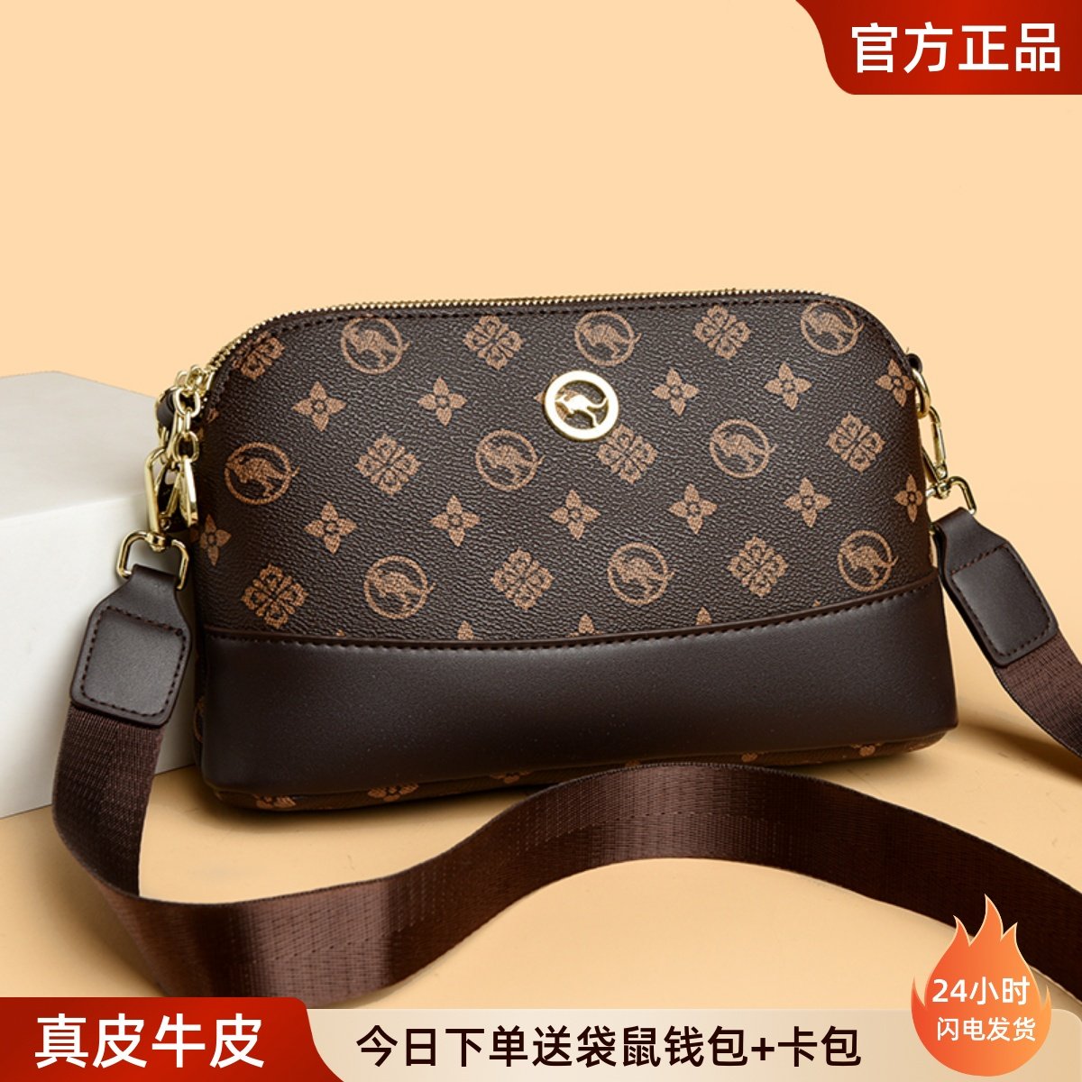 袋鼠真皮包包女士2025新款中老年女包妈妈斜挎小包包手机包单肩包