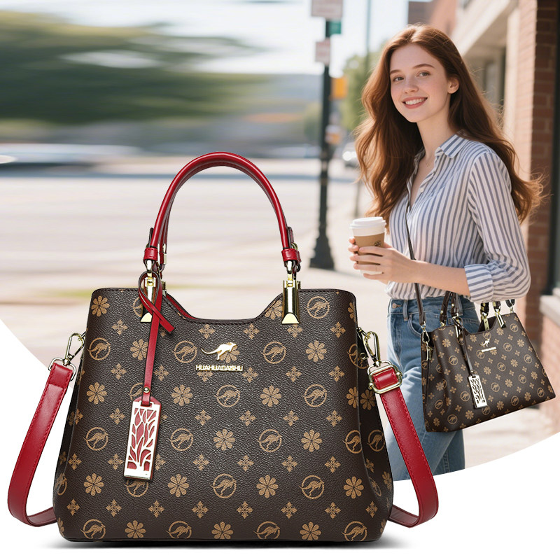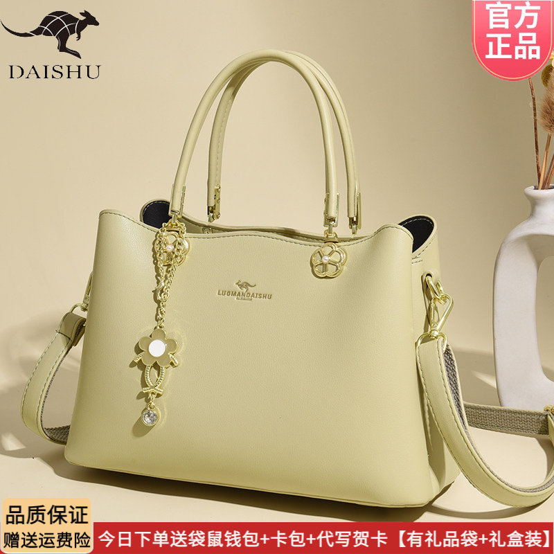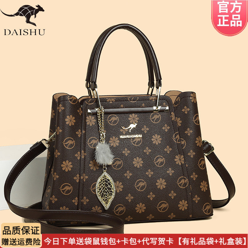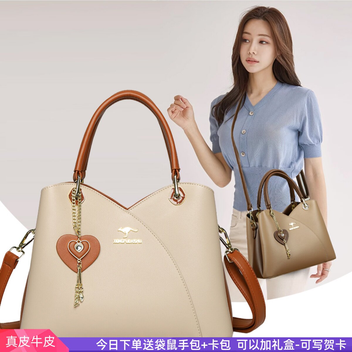 袋鼠正品女包2026新款真皮印花手提包中年妈妈时尚通勤斜挎牛皮包