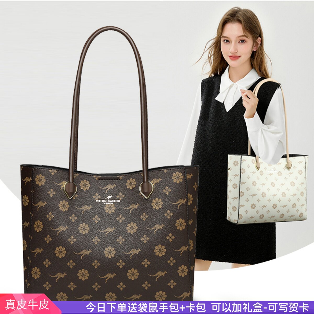 正品袋鼠托特包女士包包2026新款真皮单肩包时尚百搭软皮牛皮包包