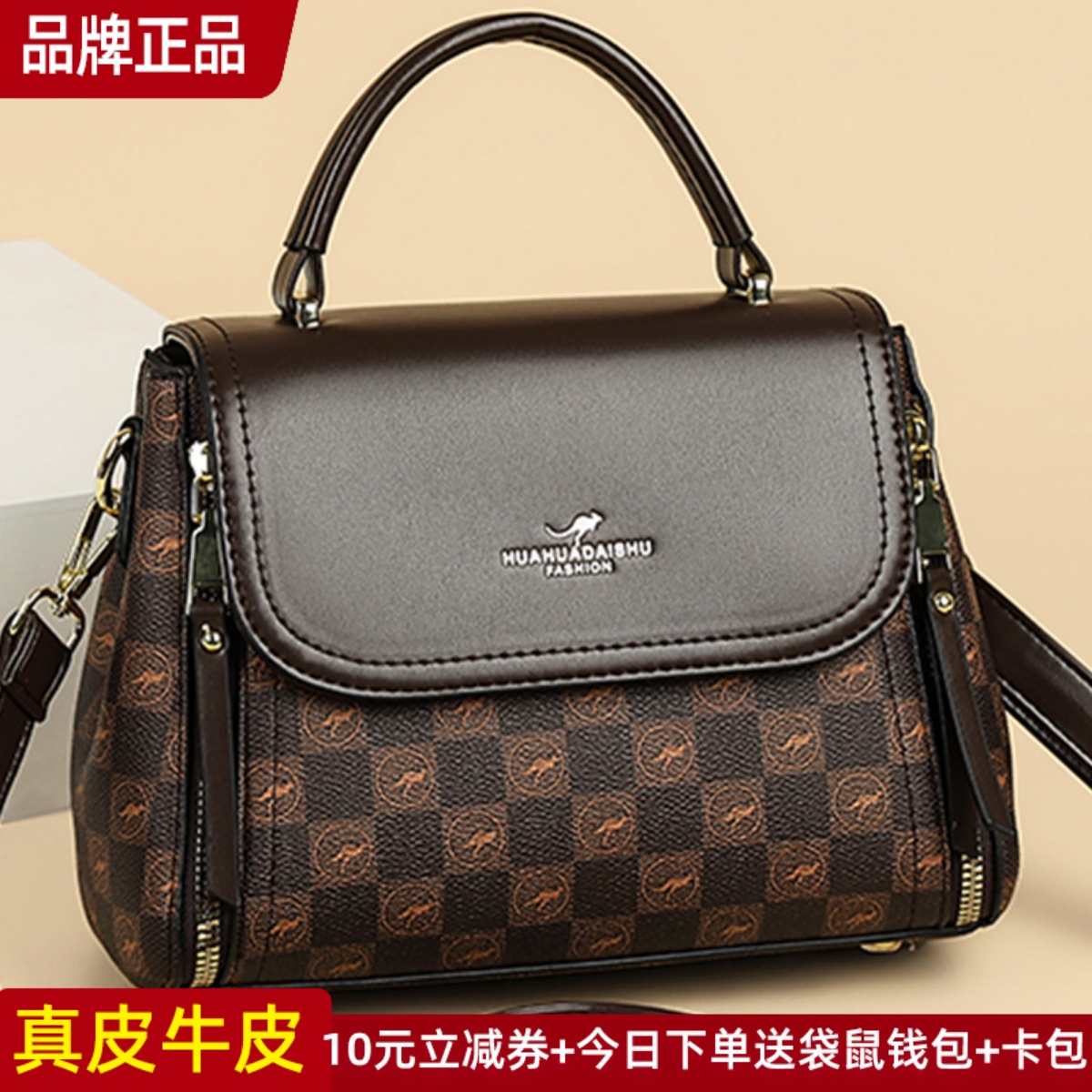 袋鼠斜挎包小包手提包包女士2025新款单肩包女包百搭牛皮包包休闲
