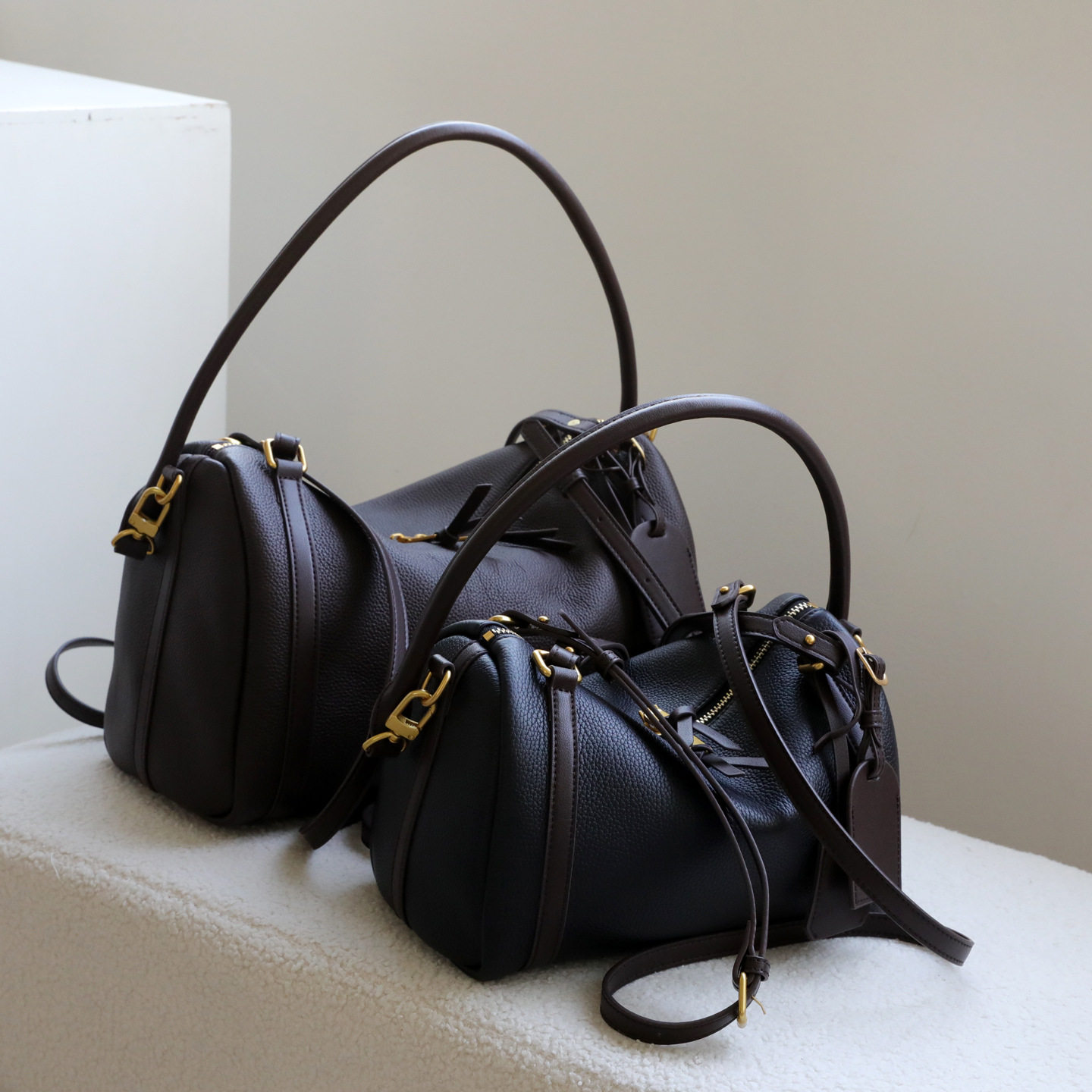 ARJOMORY小众头层牛皮美拉德波士顿包女2025秋冬新款单肩包斜挎包