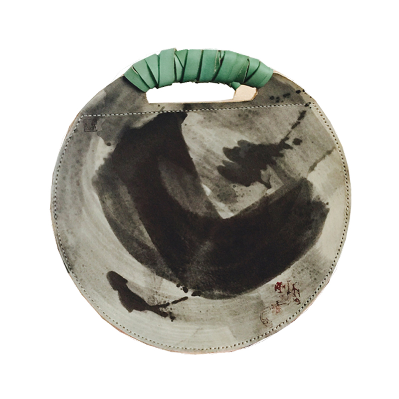 中国设计师 艺术手提包 斜跨包 手绘花色手工牛皮包 圆筒复古女包