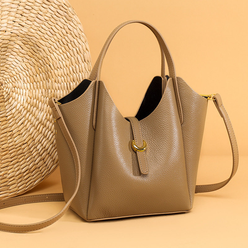 秋冬2025小众真皮水桶包女百搭洋气手提包高级感休闲斜挎包牛皮包