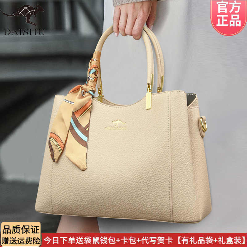 袋鼠品牌女士手提包2026新款高级感斜挎包时尚大气通勤软皮包送礼