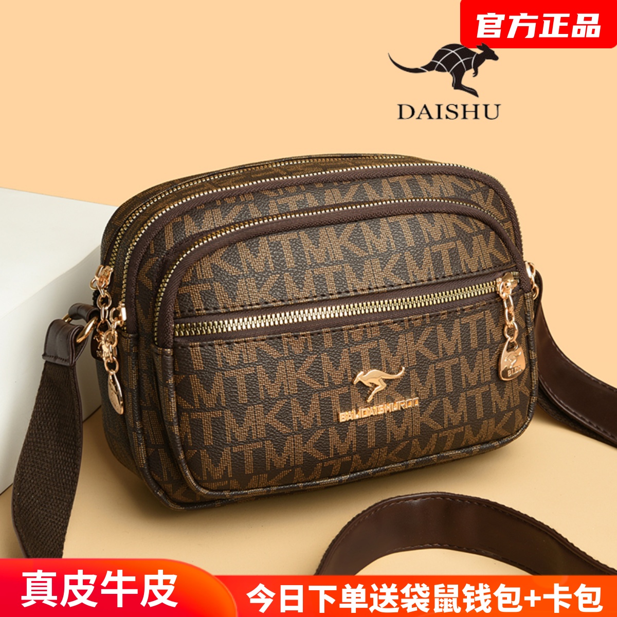 凯迪袋鼠真皮包包女2025新款斜挎包女士手提包高级感中年妈妈小包