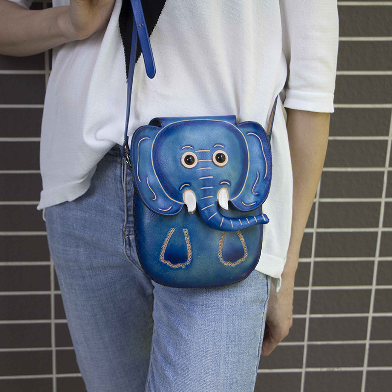 纯手工牛皮动物斜挎包象手机包真皮女包迷你单肩包夏季休闲百搭包
