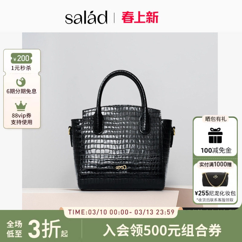 【新品】salad Pretty Purse鳄鱼纹手提包轻奢牛皮包包女日常百搭