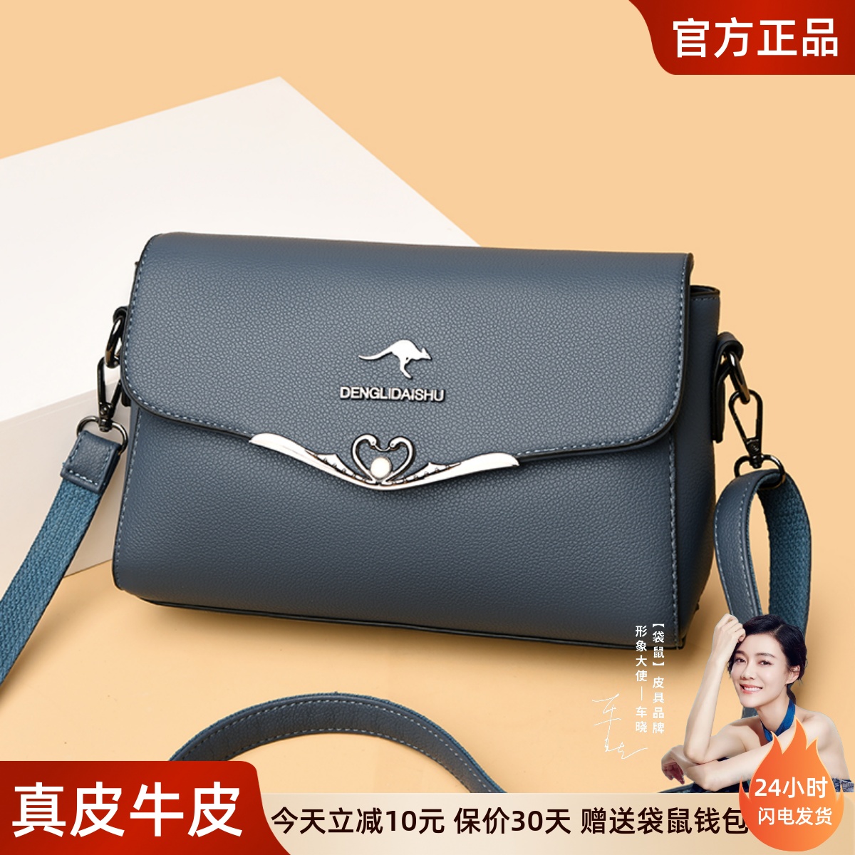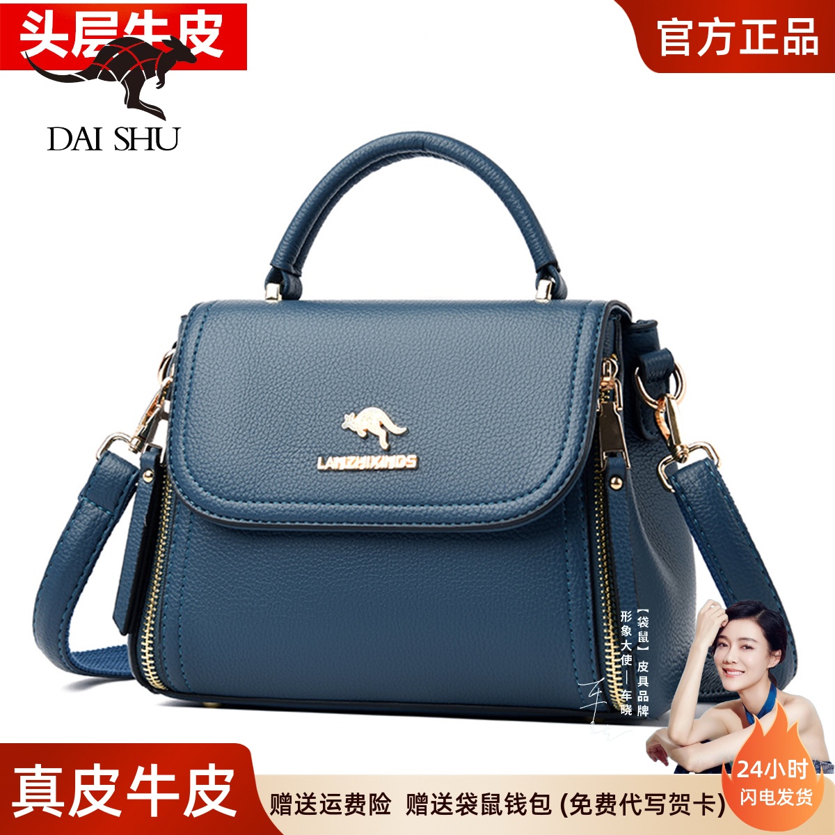 蓝之袋鼠真皮包包女2025新款多层时尚软皮单肩中年妈妈牛皮斜挎包