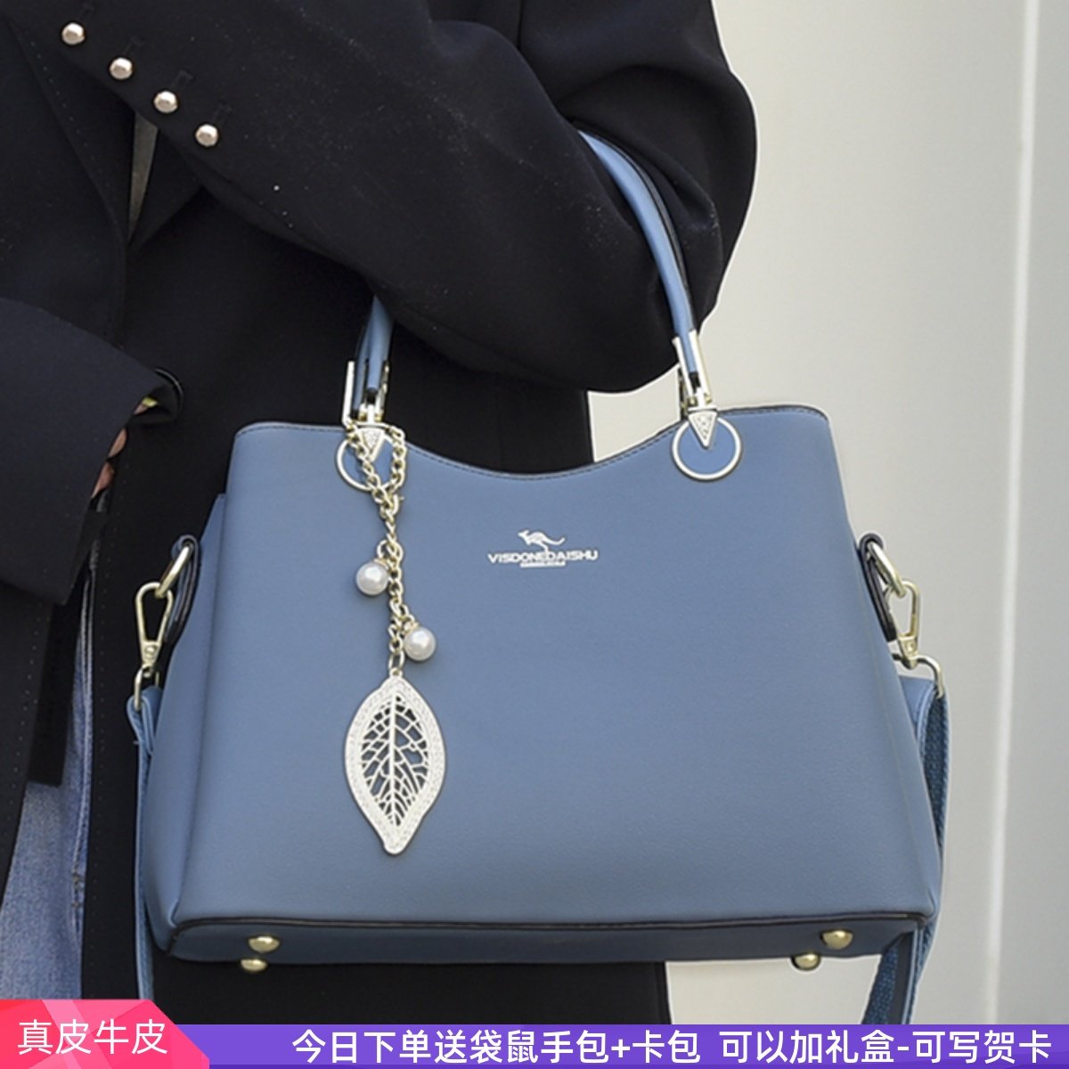 品牌袋鼠真皮包包女2025新款百搭单肩包中年妈妈手提包时尚托特包