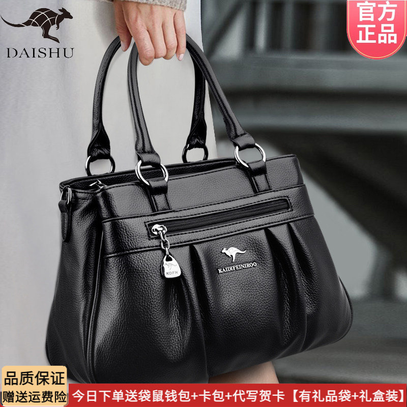 袋鼠品牌皮包手提包女2026新款斜挎包时尚百搭软皮软包送礼妈妈包
