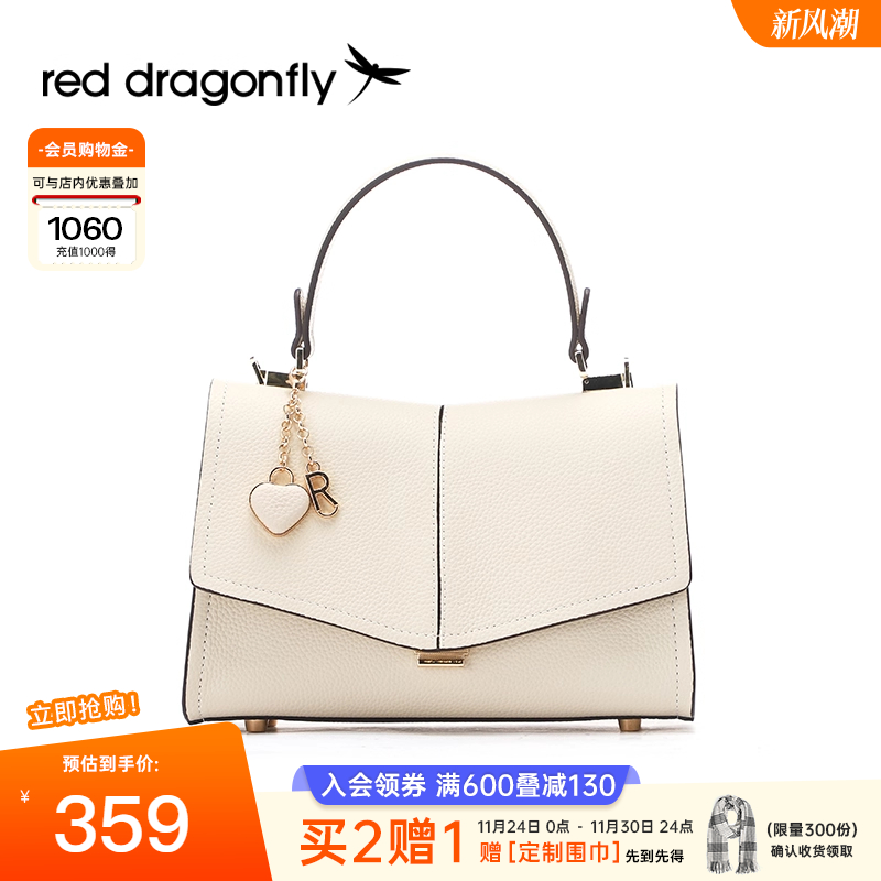 红蜻蜓真皮手提包女式头层牛皮包包小方包妈妈泡泡通勤单肩斜挎包