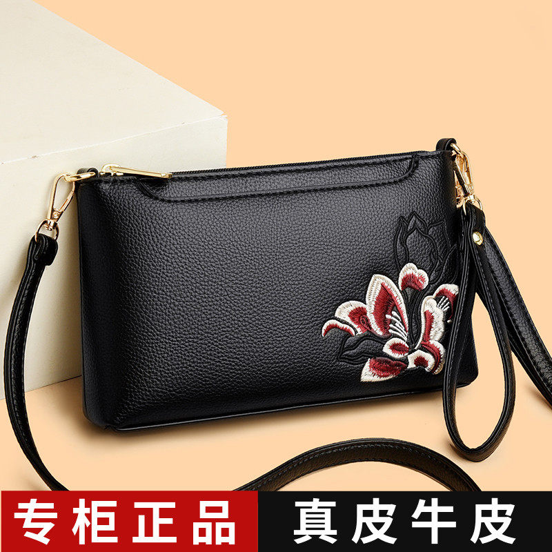 正品软皮妈妈包女士2026新款时尚手机包百搭真皮斜挎包单肩牛皮包