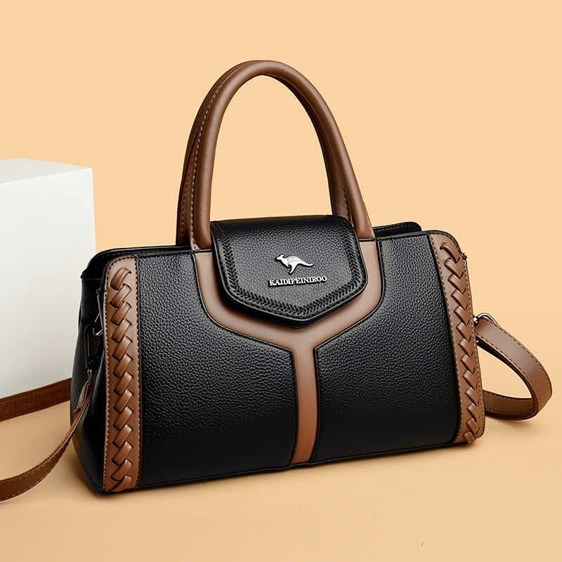 袋鼠手提包时尚女士2022新款中年真皮包包女妈妈包百搭牛皮斜挎包