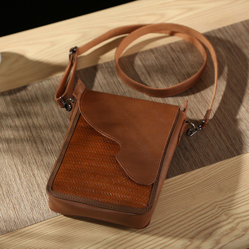 极速国风手工竹j编牛皮包斜挎手防水提包女拎包文艺编织手拎包复