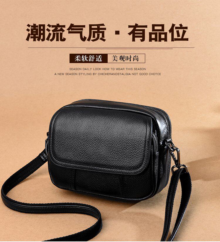 真皮包包女2023新款春夏时尚双层拉链大容量休闲单肩斜挎包手提包