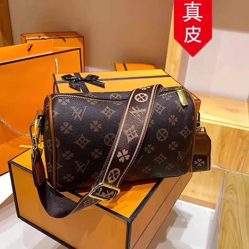 梦莲娜55517新款头层牛皮女包磨砂牛皮真皮包包单肩斜挎枕头包