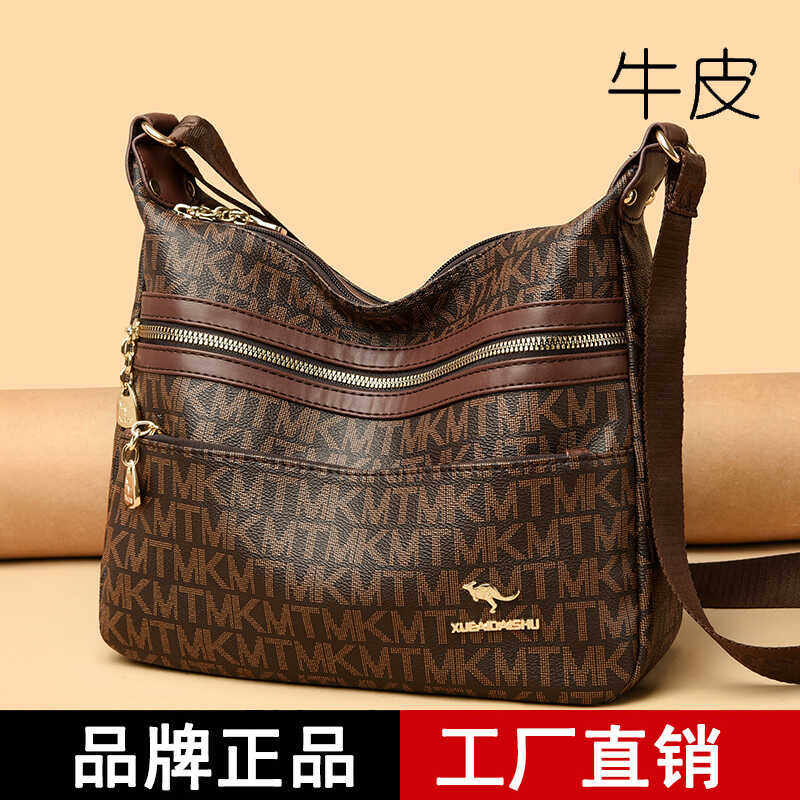 品牌正品真皮女包斜挎包大容量包包女士2024新款妈妈包时尚牛皮包