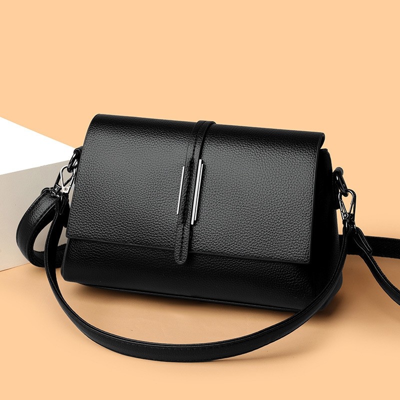 头层牛皮时尚手提单肩斜挎女包荔枝纹新款通勤百搭牛皮包