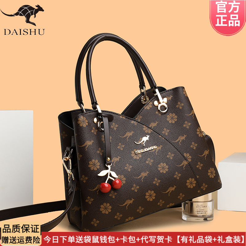 蒂森袋鼠真皮包包2023新款大气送妈妈牛皮手提包时尚中年斜挎女包