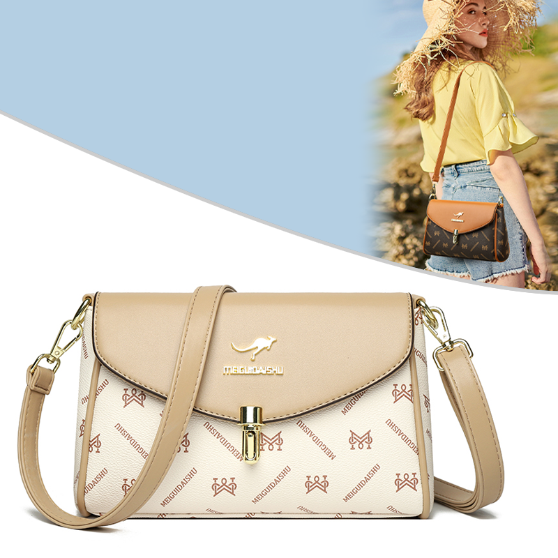 袋鼠包包女新款2025斜挎包单肩包女士包包时尚小方包夏季牛皮包女