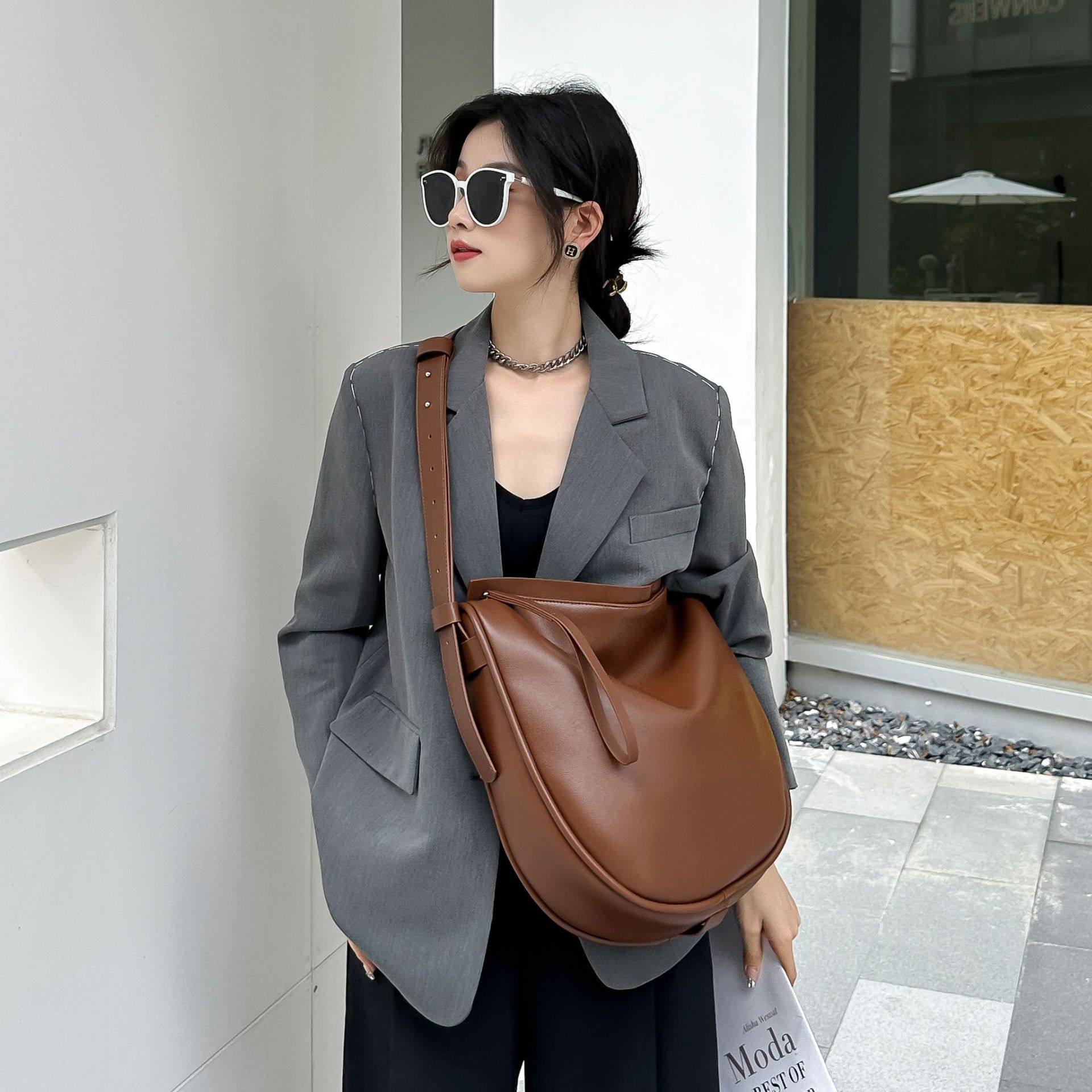 女包洋气百搭牛皮手提斜挎双肩多用2026新款软皮包包宽肩带欧货包