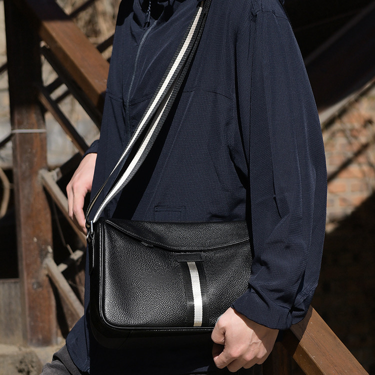 男士斜挎包真皮2025新款商务休闲背包荔枝纹头层牛皮包男包单肩包